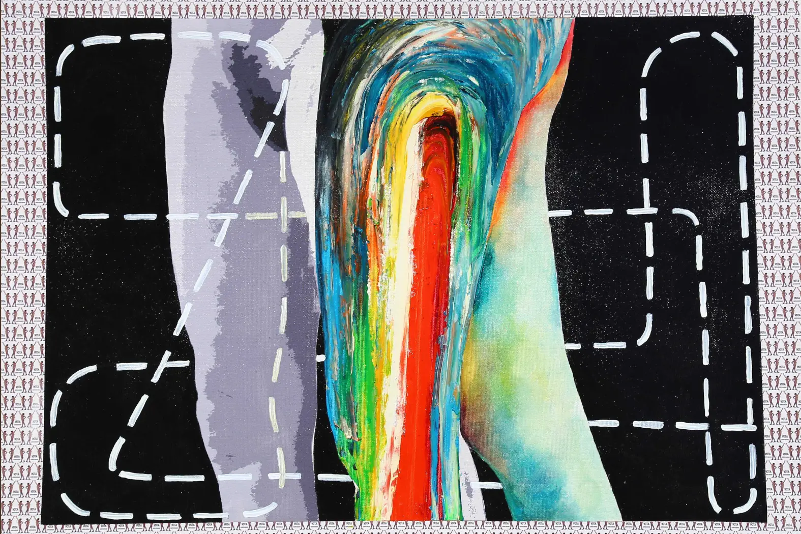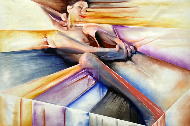 Si celebra la rappresentazione della forza del corpo nell’atto della sua liberazione da una struttura che non è solo forma che avvolge e lo modifica ponendolo su un livello assoggettante, ma anche parola e ideologia e convenzione da cui il corpo si libera contaminandosi con l’ambiente per costruire il suo habitat, generato da una fusione molecolare: corpo+ materia organica + informazione, generando un nuovo corpo che dona se ovunque diventando altri corpi prodotti da quella donazione.