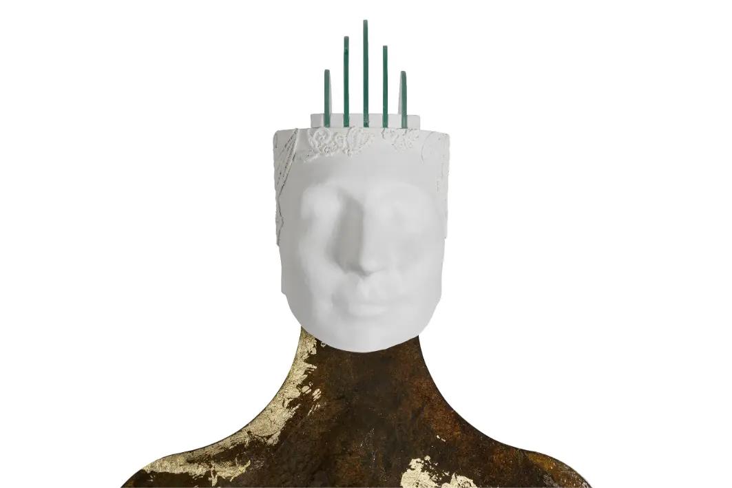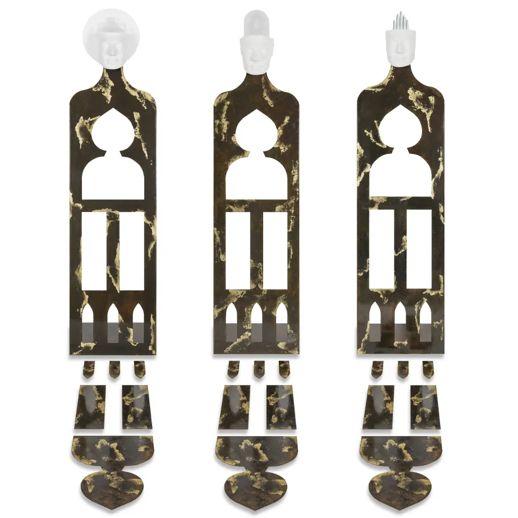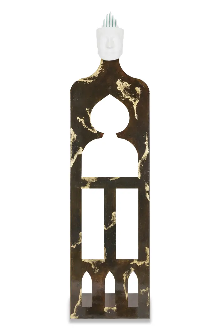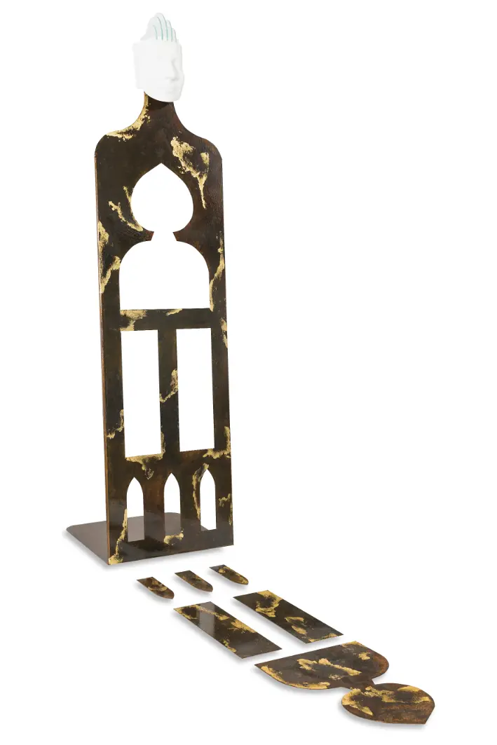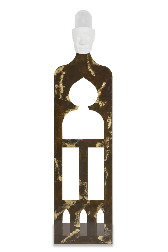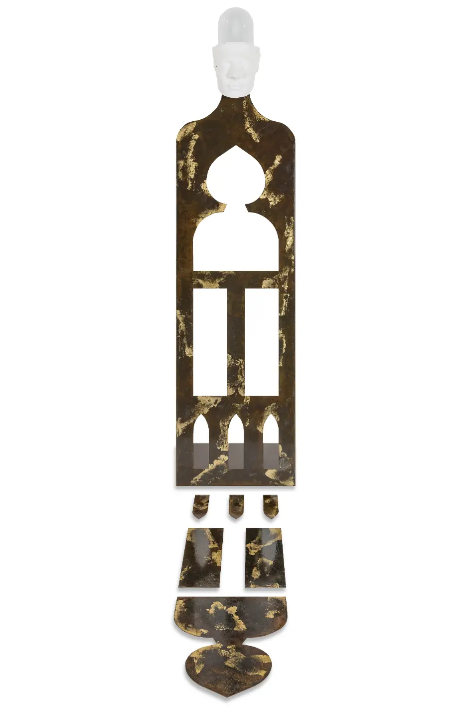 Corpo/base in ferro tagliato a laser e antichizzato con interventi di doratura